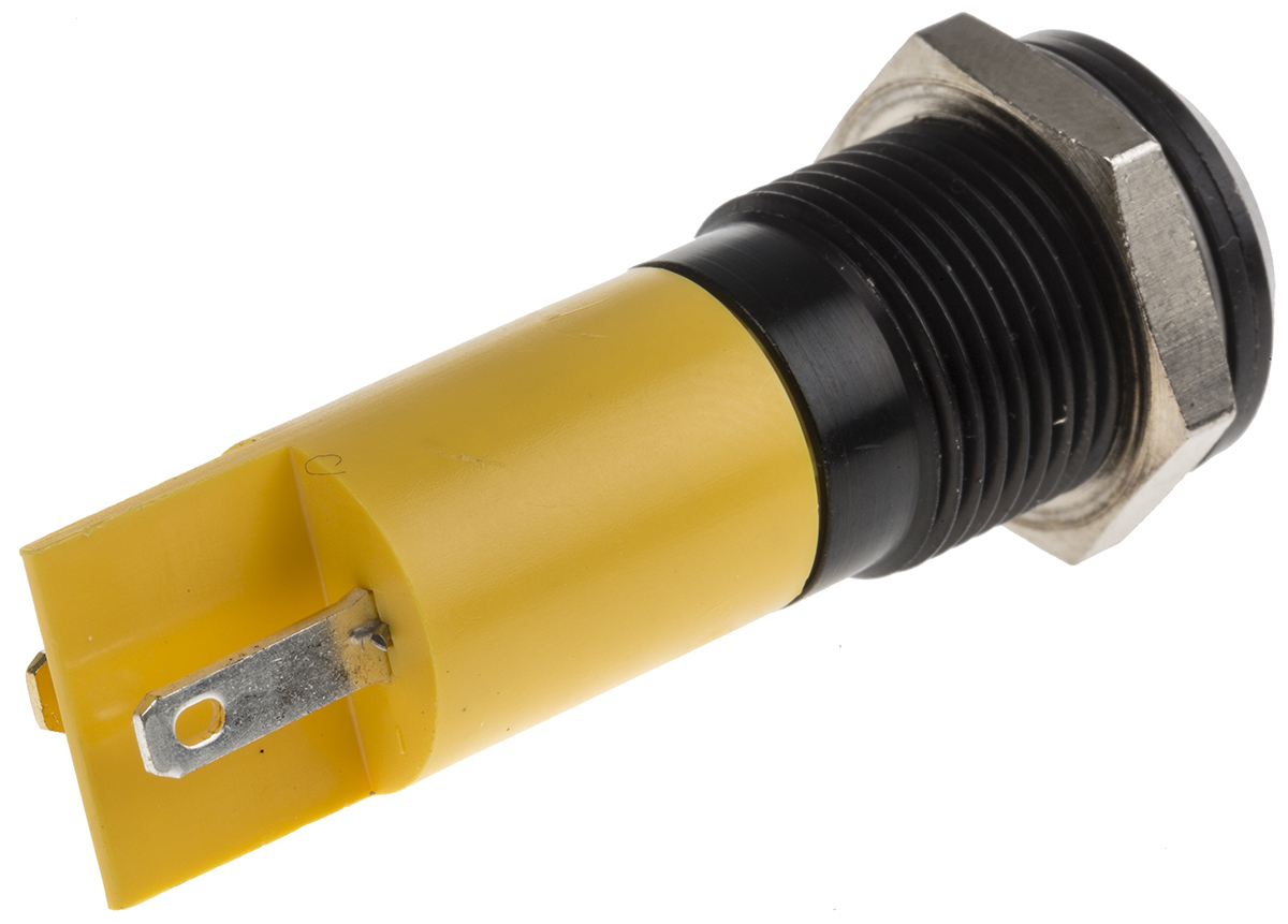 This is Yellow LED Indicator 230 V ac 10 mm Lamp Size 14mm Mounting Hole Size IP67 manufactured by RS Pro. The manufacturer part number is 210-096. Regarding light output colour, it outputs yellow light colour. The product has a current rating of 3ma. In addition, It features 14mm of mounting hole size. It is IP rated with ip67. Furthermore, the bezel has a classic black colour. Moreover, the product has a nominal 230v ac voltage rating. The given intensity of the product is 50mcd. Its accurate length is 61mm. The bezel features a prominent style. It is a type of led lamp.