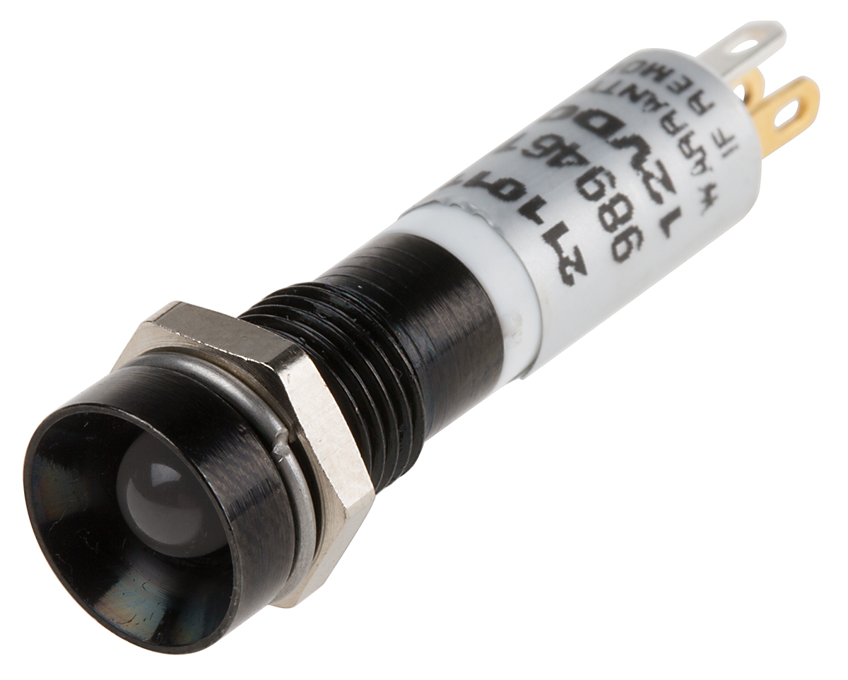This is Green Red Yellow LED Indicator 12 V dc 5 mm Lamp Size 8mm Mounting Hole Size manufactured by RS Pro. The manufacturer part number is 211-011. Regarding light output colour, it outputs green, red, yellow light colour. Its lamp is 5 mm in size . In addition, It features 8mm of mounting hole size. The product is available in panel mount configuration. Moreover, the product has a nominal 12v dc voltage rating. Furthermore, the bezel has a classic black colour. The given intensity of the product is 60 mcd, 13 mcd, 15mcd. Its accurate length is 34.8mm. The bezel features a recessed style. The product is designed with a solder tab termination. The product has a current rating of 20ma. It is a type of led lamp.