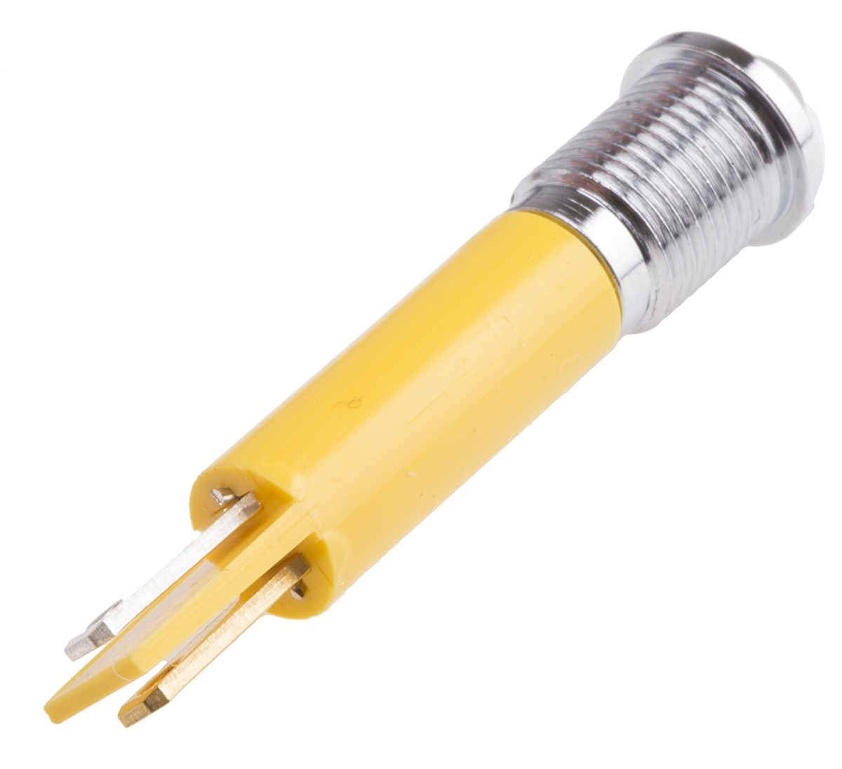 This is Prominent Indicator Panel Mount 8mm Mounting Hole Size Yellow LED Solder Tab Termination 5 mm Lamp Size 12 V ac/dc manufactured by RS Pro. The manufacturer part number is 211-500. Regarding light output colour, it outputs yellow light colour. The product has a current rating of 20ma. In addition, It features 8mm of mounting hole size. It is IP rated with ip67. Furthermore, the bezel has a classic chrome colour. Moreover, the product has a nominal 12v voltage rating. The given intensity of the product is 40mcd. Its accurate length is 44mm. The bezel features a prominent style. The product is designed with a solder tab termination. It is a type of led lamp.