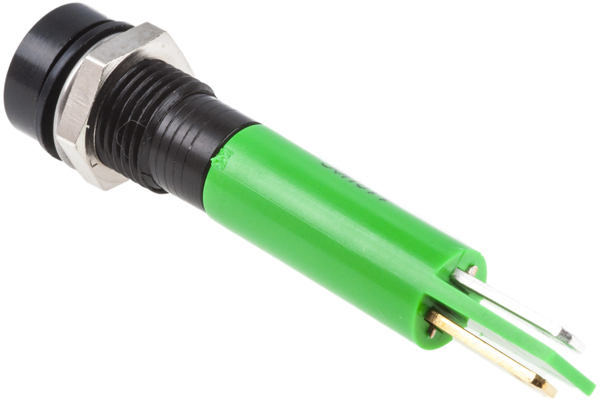 This is Green LED Indicator 110 V ac 9.5 mm Lamp Size 8mm Mounting Hole Size IP67 manufactured by RS Pro. The manufacturer part number is 846-2768. Regarding light output colour, it outputs green light colour. The product has a current rating of 6ma. In addition, It features 8mm of mounting hole size. It is IP rated with ip67. Moreover, the product has a nominal 110v ac voltage rating. Its accurate length is 34.8mm. The given intensity of the product is 1200mcd. The bezel features a recessed style. It is a type of led lamp.
