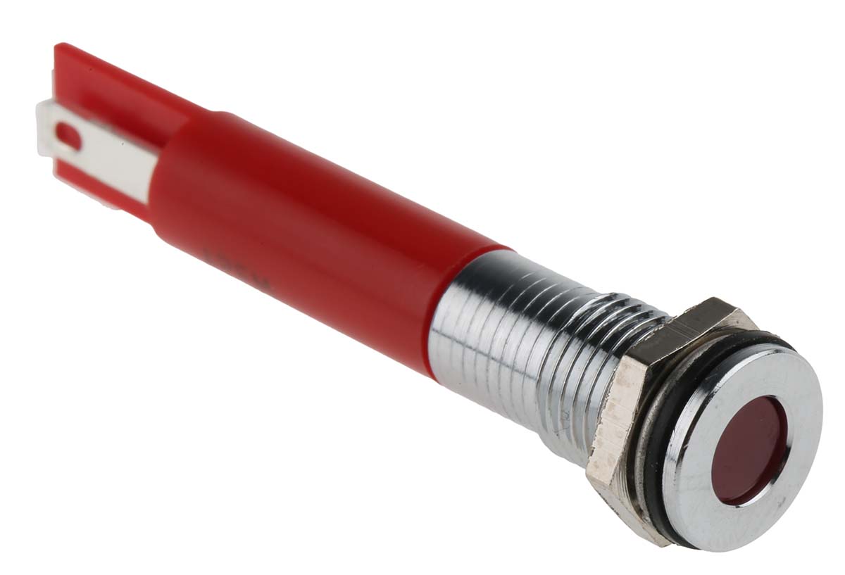 This is Flush Indicator Panel Mount 8mm Mounting Hole Size Red LED Solder Lug Termination 9.5 mm Lamp Size 220 V ac manufactured by RS Pro. The manufacturer part number is 846-2901. Regarding light output colour, it outputs red light colour. The product has a current rating of 3ma. In addition, It features 8mm of mounting hole size. It is IP rated with ip67. Furthermore, the bezel has a classic chrome colour. Moreover, the product has a nominal 220v ac voltage rating. The given intensity of the product is 980mcd. Its accurate length is 34.9mm. The bezel features a flush style. It is a type of led lamp.
