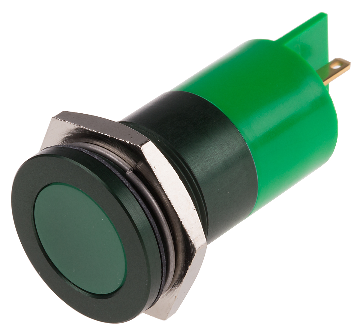 This is Flush Indicator Panel Mount 22mm Mounting Hole Size Green LED Faston Solder Lug Termination 18 mm Lamp Size manufactured by RS Pro. The manufacturer part number is 898-7716. Regarding light output colour, it outputs green light colour. The product has a current rating of 40ma. In addition, It features 22mm of mounting hole size. It is IP rated with ip67. Furthermore, the bezel has a classic green colour. Moreover, the product has a nominal 24v ac/dc voltage rating. The given intensity of the product is 980mcd. Its accurate length is 41.5mm. The bezel features a flush style. The product is designed with a faston, solder lug termination. It is a type of led lamp.