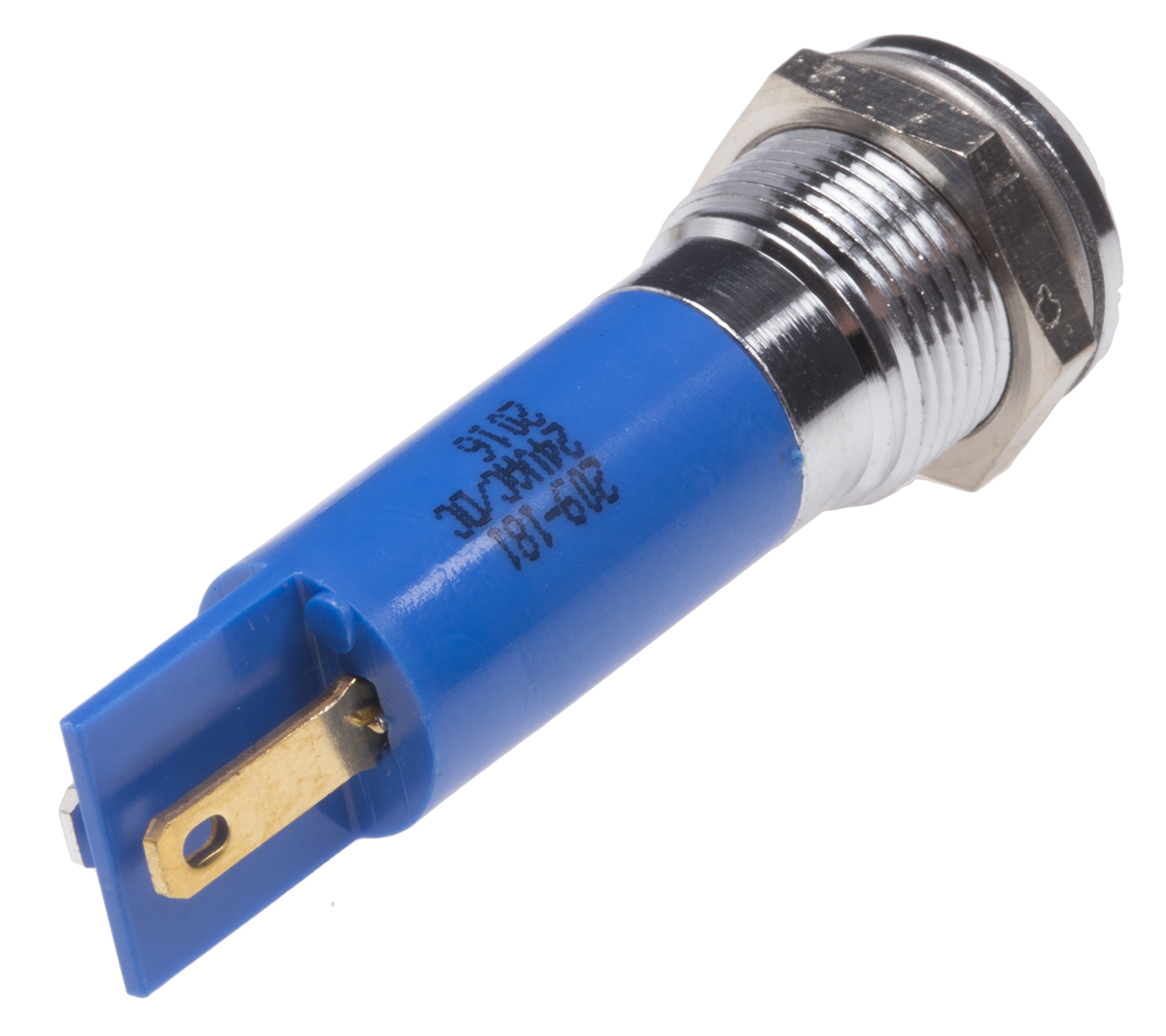 This is Prominent Indicator Panel Mount 12mm Mounting Hole Size Blue LED Solder Tab Termination 8 mm Lamp Size 24 V ac/dc manufactured by RS Pro. The manufacturer part number is 209-181. Regarding light output colour, it outputs blue light colour. The product has a current rating of 20ma. In addition, It features 12mm of mounting hole size. It is IP rated with ip67. Furthermore, the bezel has a classic chrome colour. The given intensity of the product is 500mcd. Its accurate length is 56mm. The bezel features a prominent style. The product is designed with a solder tab termination. It is a type of led lamp.
