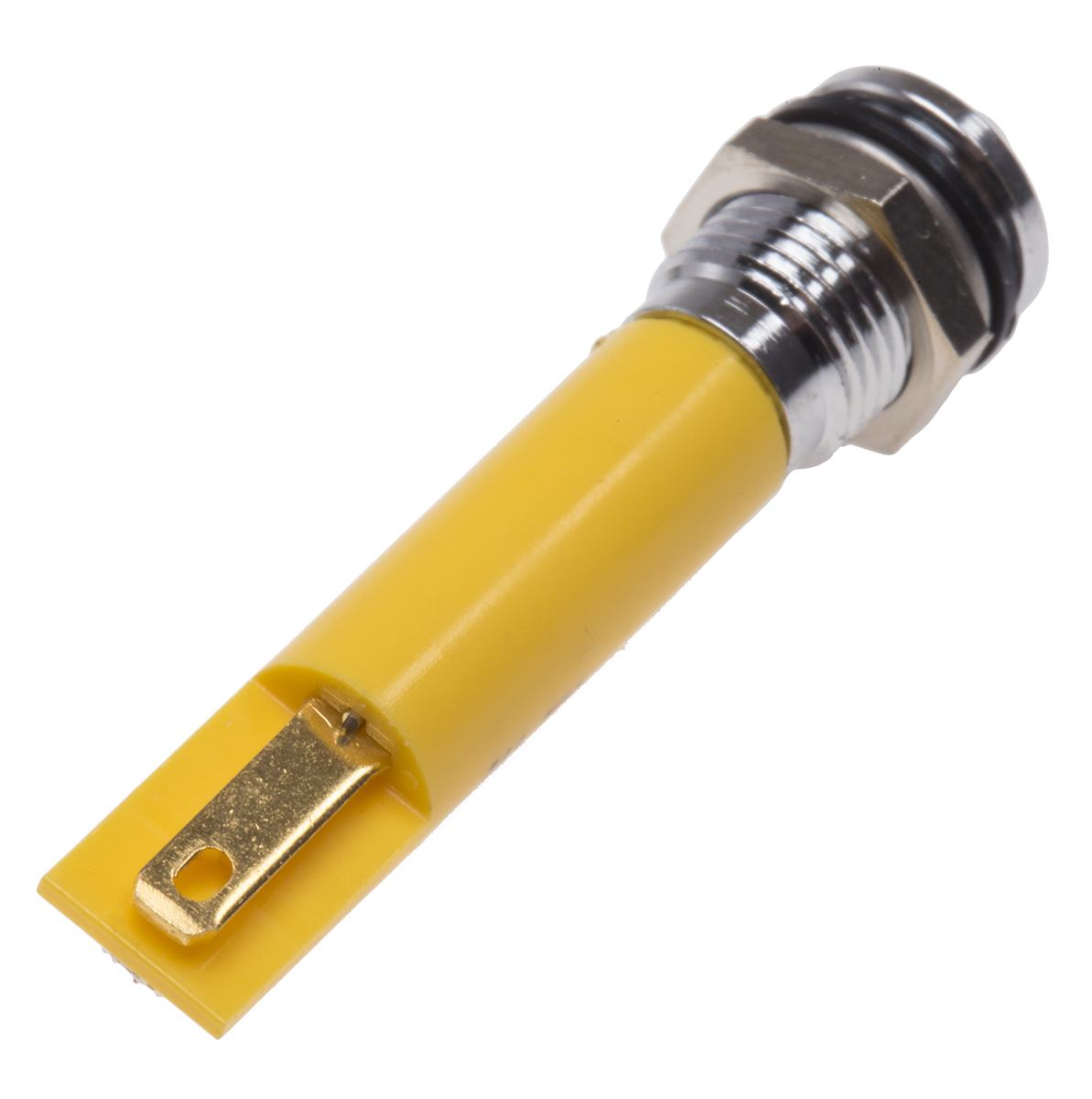 This is Yellow LED Indicator 24 V ac/dc 5 mm Lamp Size 8mm Mounting Hole Size IP67 manufactured by RS Pro. The manufacturer part number is 211-538. Regarding light output colour, it outputs yellow light colour. The product has a current rating of 20ma. In addition, It features 8mm of mounting hole size. It is IP rated with ip67. Furthermore, the bezel has a classic chrome colour. Moreover, the product has a nominal 24v ac/dc voltage rating. The given intensity of the product is 40mcd. Its accurate length is 44mm. The bezel features a prominent style. The product is designed with a solder tab termination. It is a type of led lamp.