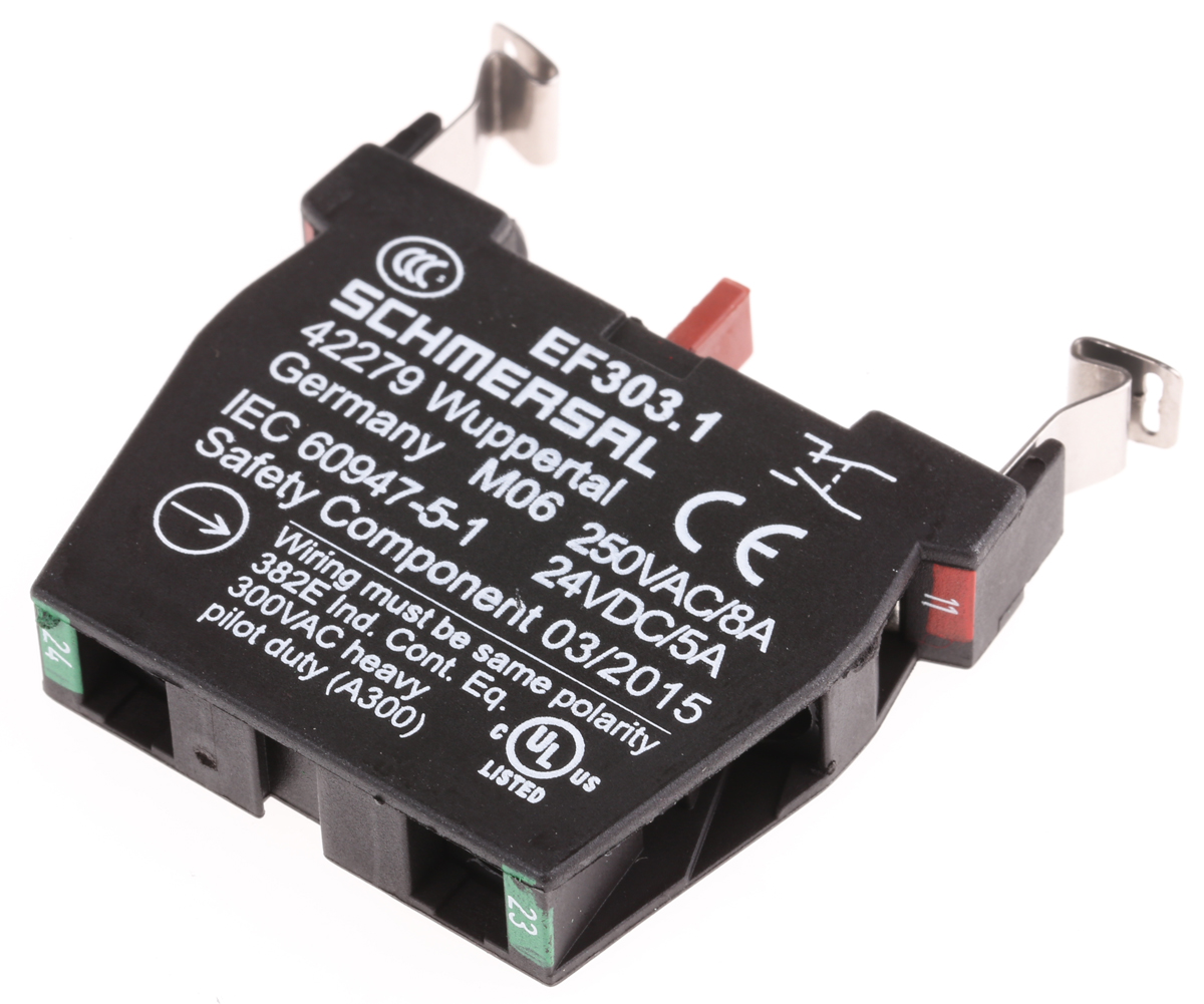 This is CONTACT ELEMENT1NC/1NO EMERGE manufactured by Schmersal. The manufacturer part number is 118 1183. The product has a current rating of 5 a, 8 a. The product is available in screw mount configuration. It is IP rated with ip20. Furthermore, the bezel has a classic black colour. The product ef, is a highly preferred choice for users. Moreover, the product has a nominal 400v voltage rating. Its accurate length is 46mm. The product is designed with a screw terminal termination. It is a type of led lamp.