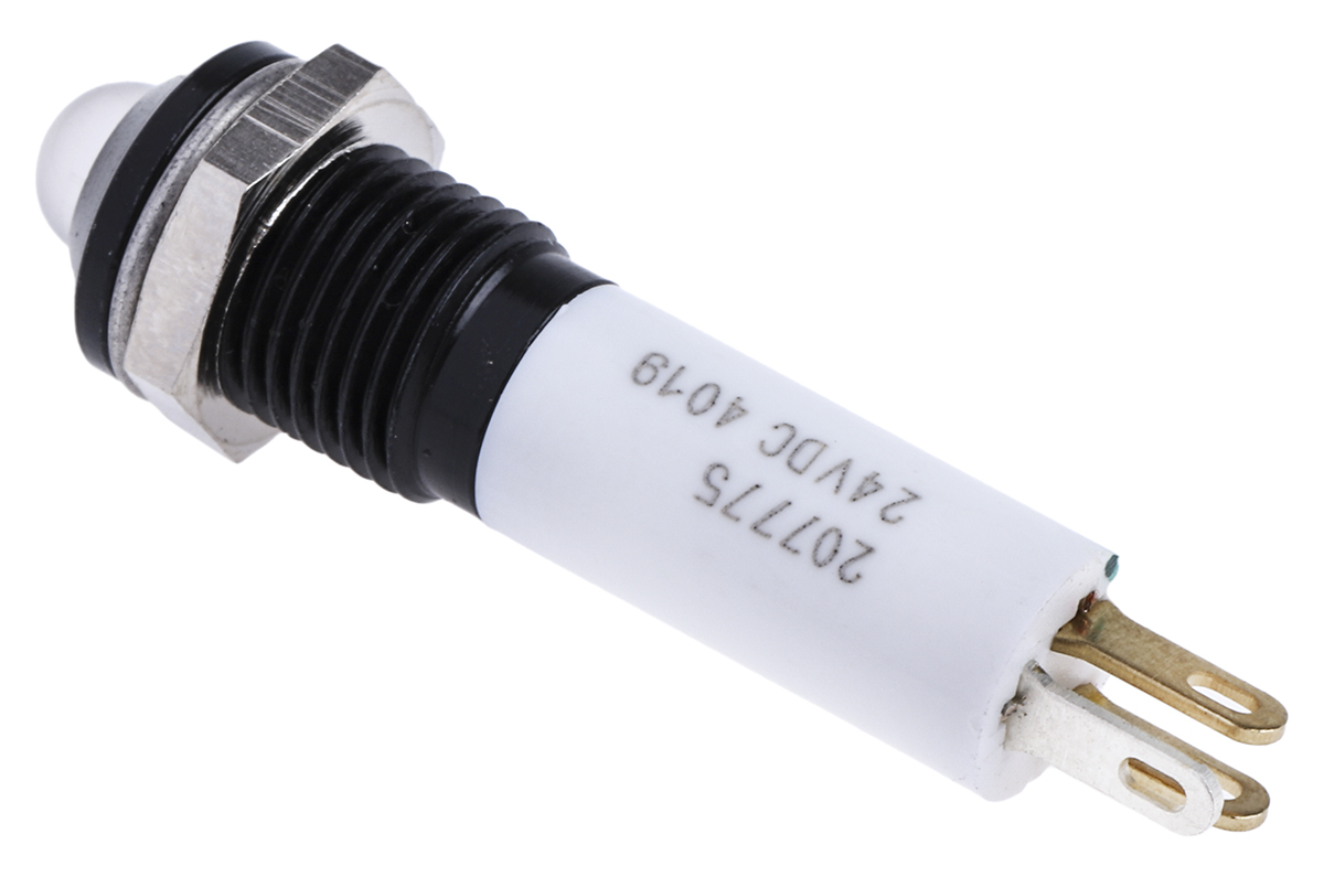 This is Green Red Yellow LED Indicator 24 V dc 5 mm Lamp Size 8mm Mounting Hole Size manufactured by RS Pro. The manufacturer part number is 207-775. Regarding light output colour, it outputs green, red, yellow light colour. Its lamp is 5 mm in size . In addition, It features 8mm of mounting hole size. The product is available in panel mount configuration. It is IP rated with ip67. Furthermore, the bezel has a classic black colour. Moreover, the product has a nominal 24v dc voltage rating. The given intensity of the product is 10 mcd, 10 mcd, 20mcd. Its accurate length is 37mm. The bezel features a prominent style. The product is designed with a solder tab termination. The product has a current rating of 20ma. It is a type of led lamp.