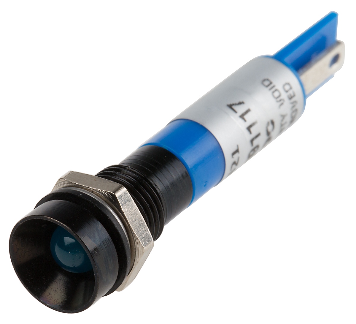 This is Blue LED Indicator 24 V ac/dc 5 mm Lamp Size 8mm Mounting Hole Size IP67 manufactured by RS Pro. The manufacturer part number is 211-421. Regarding light output colour, it outputs blue light colour. The product has a current rating of 17ma. In addition, It features 8mm of mounting hole size. It is IP rated with ip67. Moreover, the product has a nominal 24v dc voltage rating. The given intensity of the product is 1500mcd. Its accurate length is 41mm. The bezel features a recessed style. The product is designed with a solder tab termination. It is a type of led lamp.