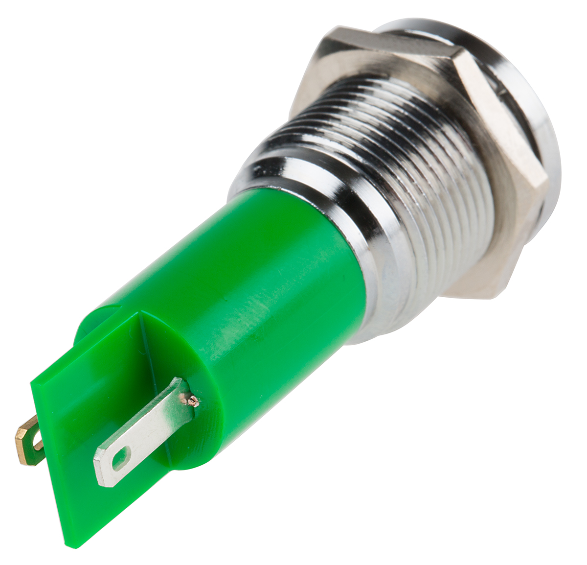 This is Green LED Indicator 24 V ac/dc 10 mm Lamp Size 16mm Mounting Hole Size IP67 manufactured by RS Pro. The manufacturer part number is 211-774. Regarding light output colour, it outputs green light colour. The product has a current rating of 20ma. In addition, It features 16mm of mounting hole size. It is IP rated with ip67. Furthermore, the bezel has a classic chrome colour. Moreover, the product has a nominal 24v ac/dc voltage rating. The given intensity of the product is 5mcd. Its accurate length is 60mm. The bezel features a flush style. The product is designed with a solder tab termination. It is a type of led lamp.