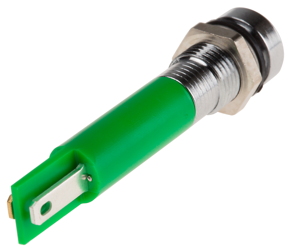This is Recessed Indicator Panel Mount 8mm Mounting Hole Size Green LED Solder Lug Termination 9.5 mm Lamp Size 220 V ac manufactured by RS Pro. The manufacturer part number is 846-2869. Regarding light output colour, it outputs green light colour. The product has a current rating of 3ma. In addition, It features 8mm of mounting hole size. It is IP rated with ip67. Furthermore, the bezel has a classic chrome colour. Moreover, the product has a nominal 220v ac voltage rating. Its accurate length is 34.8mm. The given intensity of the product is 1900mcd. The bezel features a recessed style. It is a type of led lamp.