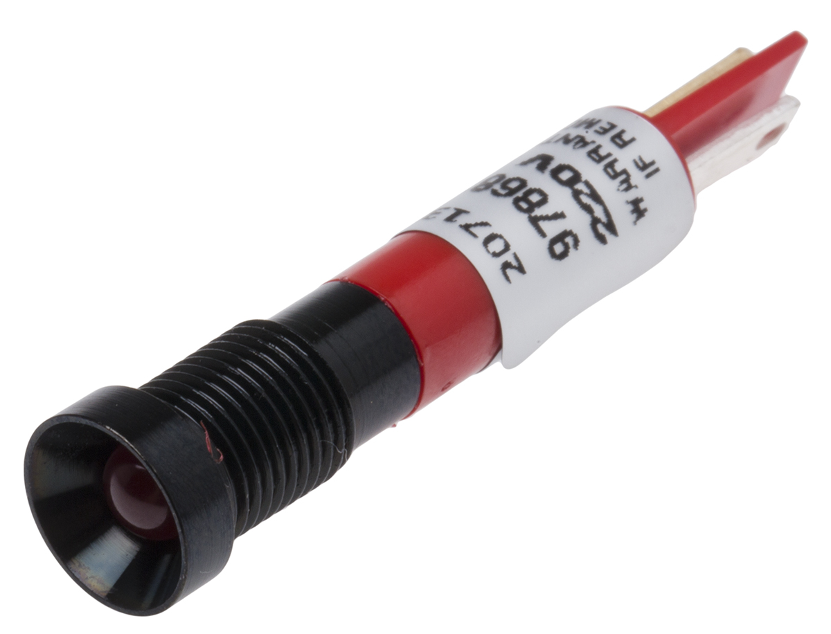 This is Red LED Indicator 230 V ac 5 mm Lamp Size 8mm Mounting Hole Size manufactured by RS Pro. The manufacturer part number is 207-135. Regarding light output colour, it outputs red light colour. The product has a current rating of 3ma. In addition, It features 8mm of mounting hole size. Moreover, the product has a nominal 230v ac voltage rating. Furthermore, the bezel has a classic black colour. The given intensity of the product is 22mcd. Its accurate length is 41mm. The bezel features a recessed style. It is a type of led lamp.
