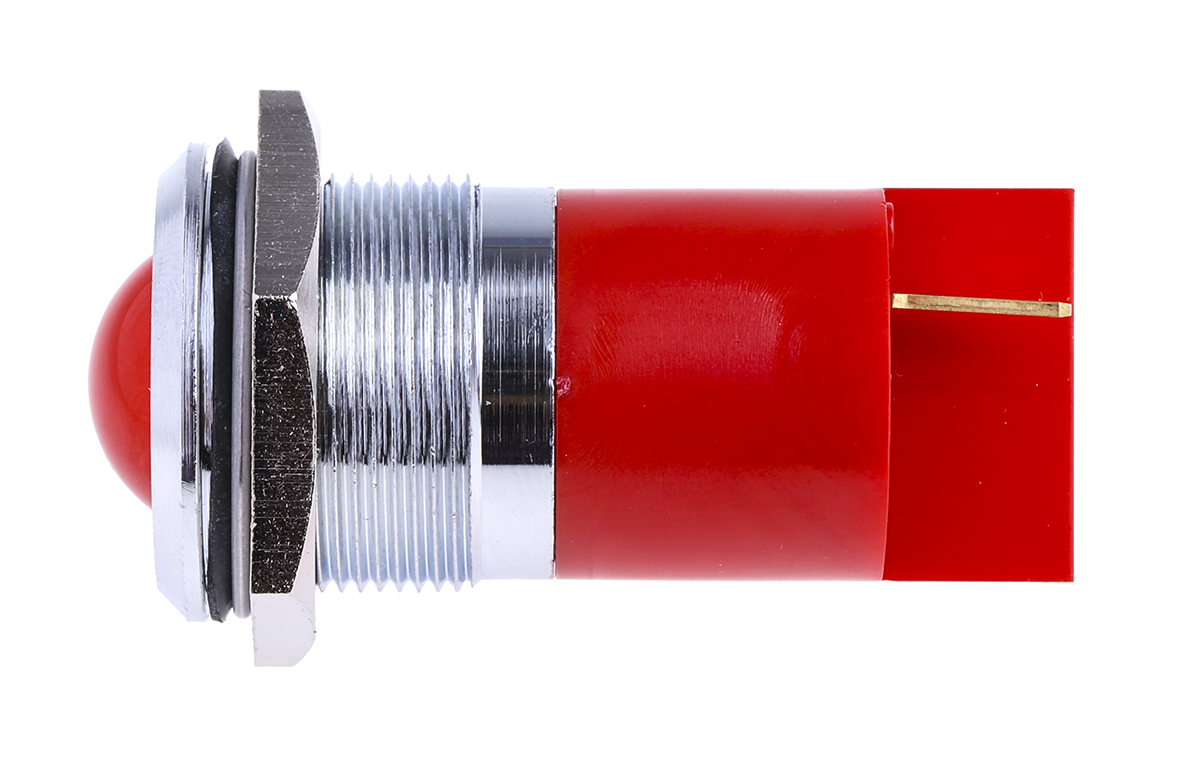 This is Red LED Indicator 230 V ac 16 mm Lamp Size 22mm Mounting Hole Size manufactured by RS Pro. The manufacturer part number is 210-737. Regarding light output colour, it outputs red light colour. The product has a current rating of 3ma. In addition, It features 22mm of mounting hole size. Moreover, the product has a nominal 230v ac voltage rating. Furthermore, the bezel has a classic chrome colour. The given intensity of the product is 28mcd. Its accurate length is 61mm. The bezel features a prominent style. It is a type of led lamp.