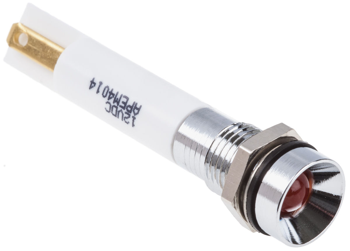 This is Orange LED Indicator 21.6 → 26.4 V dc 7 mm Lamp Size 6mm Mounting Hole Size IP67 manufactured by RS Pro. The manufacturer part number is 843-2436. Regarding light output colour, it outputs orange light colour. The product has a current rating of 20ma. In addition, It features 6mm of mounting hole size. It is IP rated with ip67. Furthermore, the bezel has a classic chrome colour. Moreover, the product has a nominal 21.6 → 26.4v dc voltage rating. The given intensity of the product is 60mcd. Its accurate length is 27mm. The bezel features a recessed style. It is a type of led lamp.