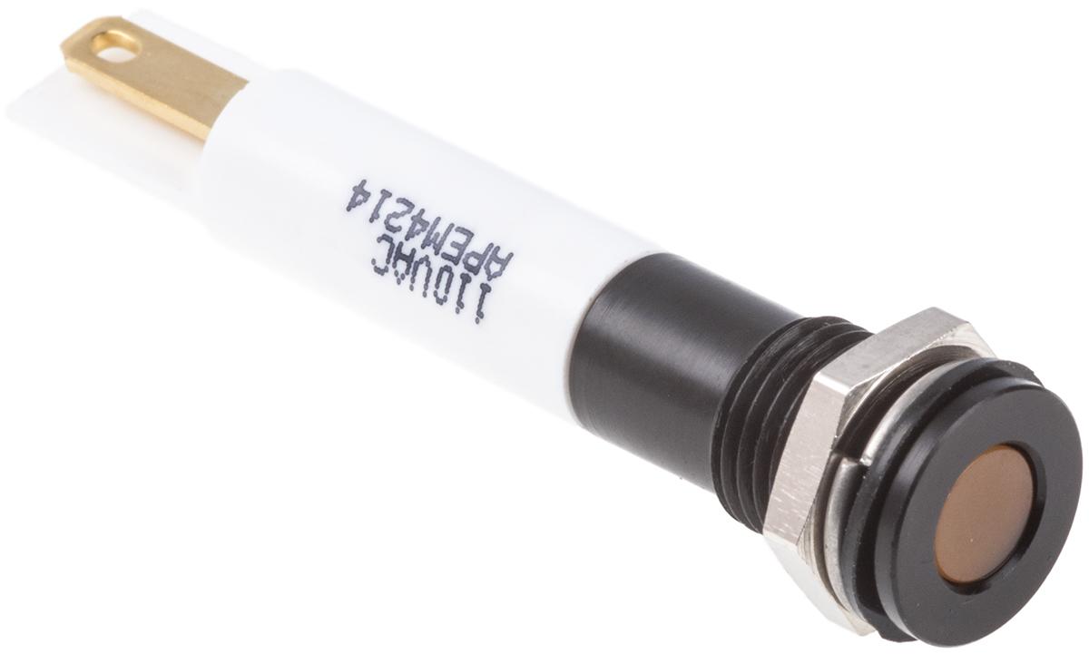 This is Flush Indicator Panel Mount 8mm Mounting Hole Size Orange LED Solder Lug Termination 9.5 mm Lamp Size 220 V ac manufactured by RS Pro. The manufacturer part number is 846-2932. Regarding light output colour, it outputs orange light colour. The product has a current rating of 3ma. In addition, It features 8mm of mounting hole size. It is IP rated with ip67. Moreover, the product has a nominal 220v ac voltage rating. The given intensity of the product is 110mcd. Its accurate length is 34.9mm. The bezel features a flush style. It is a type of led lamp.