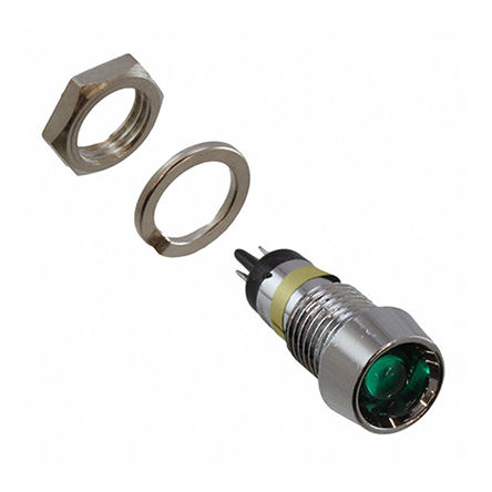 This is Green LED Panel LED 2 V dc 7.2mm Mounting Hole Size IP66 manufactured by Dialight. The manufacturer part number is 607-2212-110F. Regarding light output colour, it outputs green light colour. The product has a current rating of 15ma. In addition, It features 7.2mm of mounting hole size. It is IP rated with ip66. Furthermore, the bezel has a classic black colour. Moreover, the product has a nominal 2v dc voltage rating. The given intensity of the product is 50mcd. Its accurate length is 21mm. The bezel features a recessed style. It is a type of led lamp.