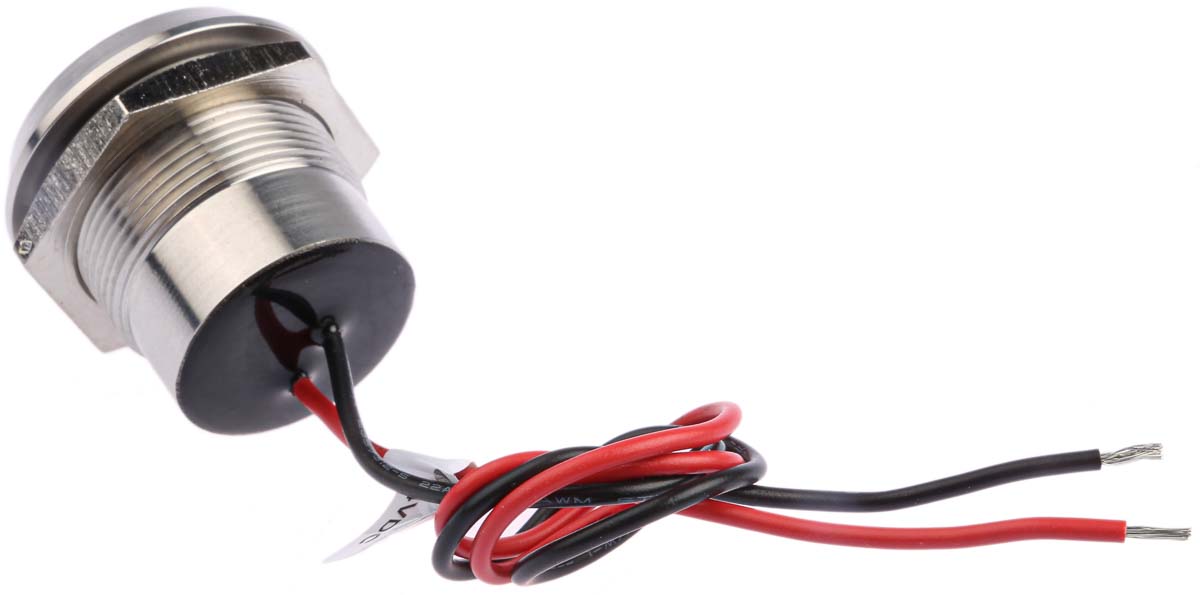 This is Red Indicator 24 V dc 18 mm Lamp Size 22mm Mounting Hole Size IP67 manufactured by RS Pro. The manufacturer part number is 123-2424. Regarding light output colour, it outputs red light colour. The product has a current rating of 40ma. In addition, It features 22mm of mounting hole size. It is IP rated with ip67. Moreover, the product has a nominal 24v dc voltage rating. Its accurate length is 24.5mm. The bezel features a flush style. The product is designed with a lead wires termination. It is a type of led lamp.