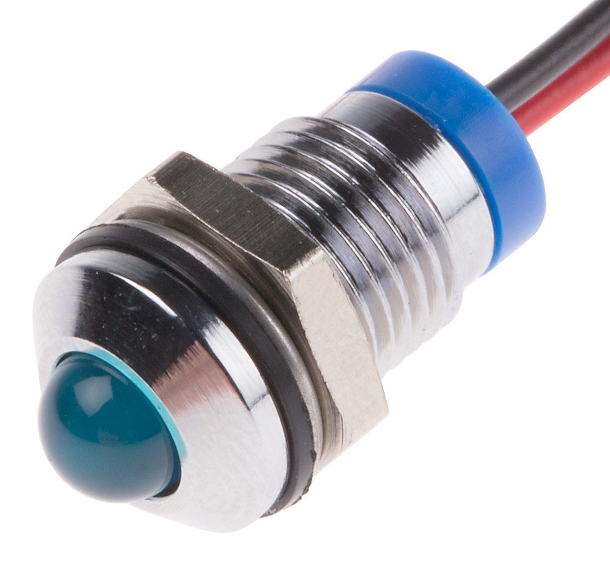 This is Blue Indicator 2 V dc 5 mm Lamp Size 8mm Mounting Hole Size IP67 manufactured by RS Pro. The manufacturer part number is 723-9340. Regarding light output colour, it outputs blue light colour. The product has a current rating of 20ma. In addition, It features 8mm of mounting hole size. It is IP rated with ip67. Furthermore, the bezel has a classic chrome colour. Moreover, the product has a nominal 2v dc voltage rating. The given intensity of the product is 90mcd. Its accurate length is 22.5mm. The bezel features a prominent style. The product is designed with a lead wires termination. It is a type of led lamp.