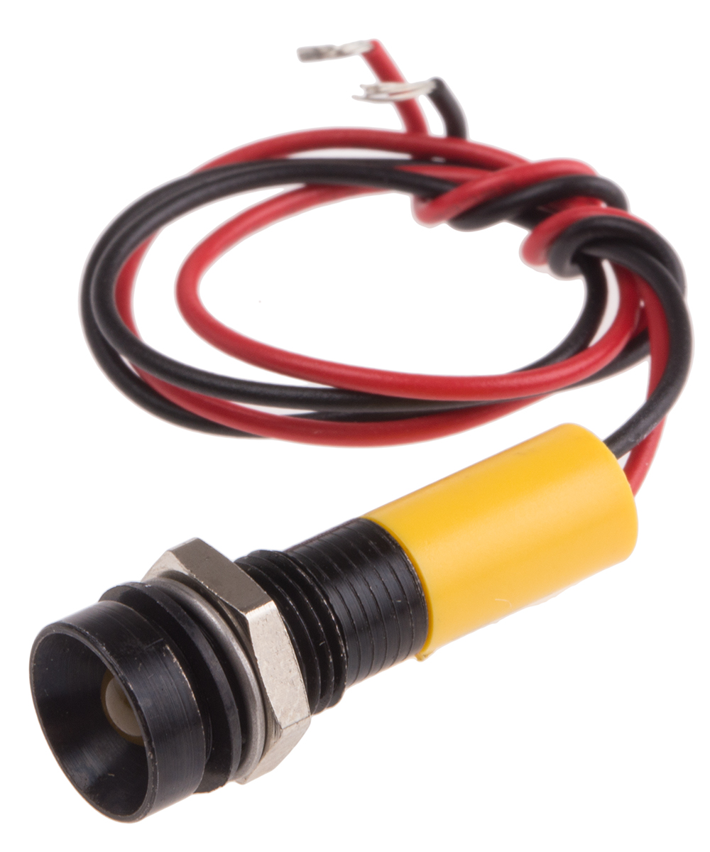 This is Yellow Indicator 24 V dc 5 mm Lamp Size 8mm Mounting Hole Size IP67 manufactured by RS Pro. The manufacturer part number is 723-9517. Regarding light output colour, it outputs yellow light colour. The product has a current rating of 20ma. In addition, It features 8mm of mounting hole size. It is IP rated with ip67. Moreover, the product has a nominal 24v dc voltage rating. The given intensity of the product is 40mcd. Its accurate length is 25.5mm. The bezel features a recessed style. The product is designed with a lead wires termination. It is a type of led lamp.