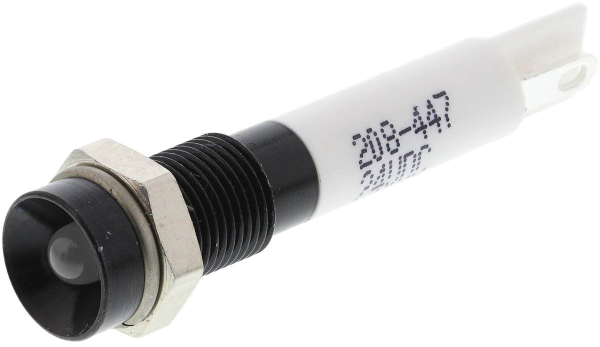 This is Green Red Indicator 24 V dc 3 mm Lamp Size 6mm Mounting Hole Size manufactured by RS Pro. The manufacturer part number is 208-447. Regarding light output colour, it outputs green, red light colour. Its lamp is 3 mm in size . In addition, It features 6mm of mounting hole size. The product is available in panel mount configuration. Moreover, the product has a nominal 24v dc voltage rating. Furthermore, the bezel has a classic black colour. The given intensity of the product is 20 mcd, 15mcd. Its accurate length is 34.4mm. The bezel features a recessed style. The product is designed with a solder tab termination. The product has a current rating of 20ma. It is a type of led lamp.