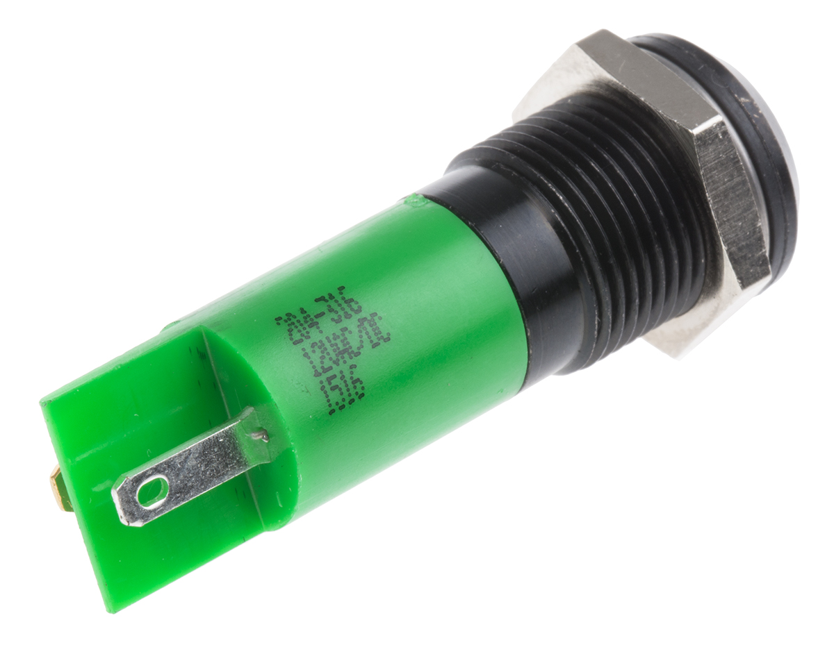 This is Green Indicator 12 V 10 mm Lamp Size 14mm Mounting Hole Size IP67 manufactured by RS Pro. The manufacturer part number is 204-316. Regarding light output colour, it outputs green light colour. The product has a current rating of 20ma. In addition, It features 14mm of mounting hole size. It is IP rated with ip67. Furthermore, the bezel has a classic black colour. Moreover, the product has a nominal 12v voltage rating. The given intensity of the product is 2700mcd. Its accurate length is 47mm. The bezel features a prominent style. It is a type of led lamp.