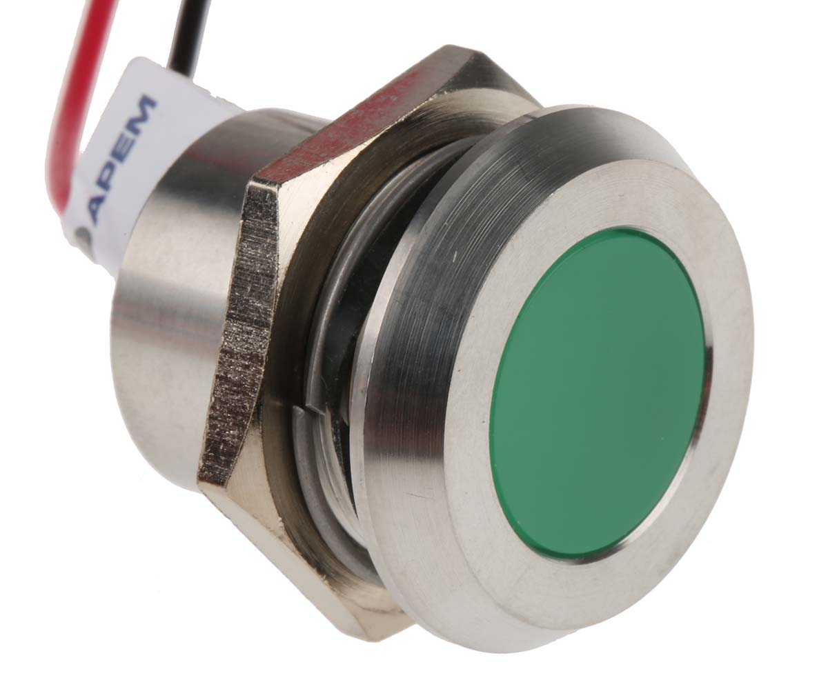 This is Green Indicator 24 V dc 18 mm Lamp Size 22mm Mounting Hole Size IP67 manufactured by RS Pro. The manufacturer part number is 123-2428. Regarding light output colour, it outputs green light colour. The product has a current rating of 40ma. In addition, It features 22mm of mounting hole size. It is IP rated with ip67. Moreover, the product has a nominal 24v dc voltage rating. Its accurate length is 24.5mm. The bezel features a flush style. The product is designed with a lead wires termination. It is a type of led lamp.