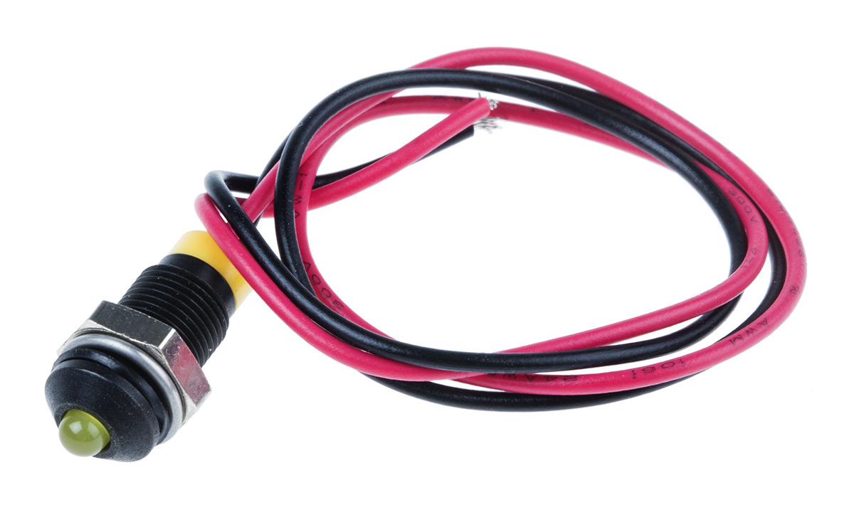This is Yellow Indicator 2 V dc 3 mm Lamp Size 6mm Mounting Hole Size IP67 manufactured by RS Pro. The manufacturer part number is 722-7716. Regarding light output colour, it outputs yellow light colour. Its lamp is 3 mm in size . The product is designed with a lead wires termination. In addition, It features 6mm of mounting hole size. It is IP rated with ip67. Moreover, the product has a nominal 2v dc voltage rating. The given intensity of the product is 30mcd. Its accurate length is 12mm. The bezel features a prominent style. The product has a current rating of 20ma. It is a type of led lamp.