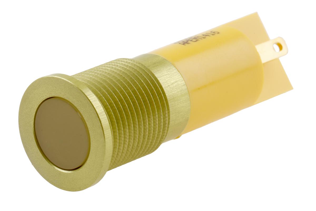 This is Yellow Indicator 24 V dc 10 mm Lamp Size 14mm Mounting Hole Size IP67 manufactured by RS Pro. The manufacturer part number is 111-6560. Regarding light output colour, it outputs yellow light colour. The product has a current rating of 20ma. In addition, It features 14mm of mounting hole size. It is IP rated with ip67. Moreover, the product has a nominal 24v dc voltage rating. The given intensity of the product is 250mcd. Its accurate length is 35.6mm. The bezel features a flush style. The product is designed with a faston, solder lug termination. It is a type of led lamp.