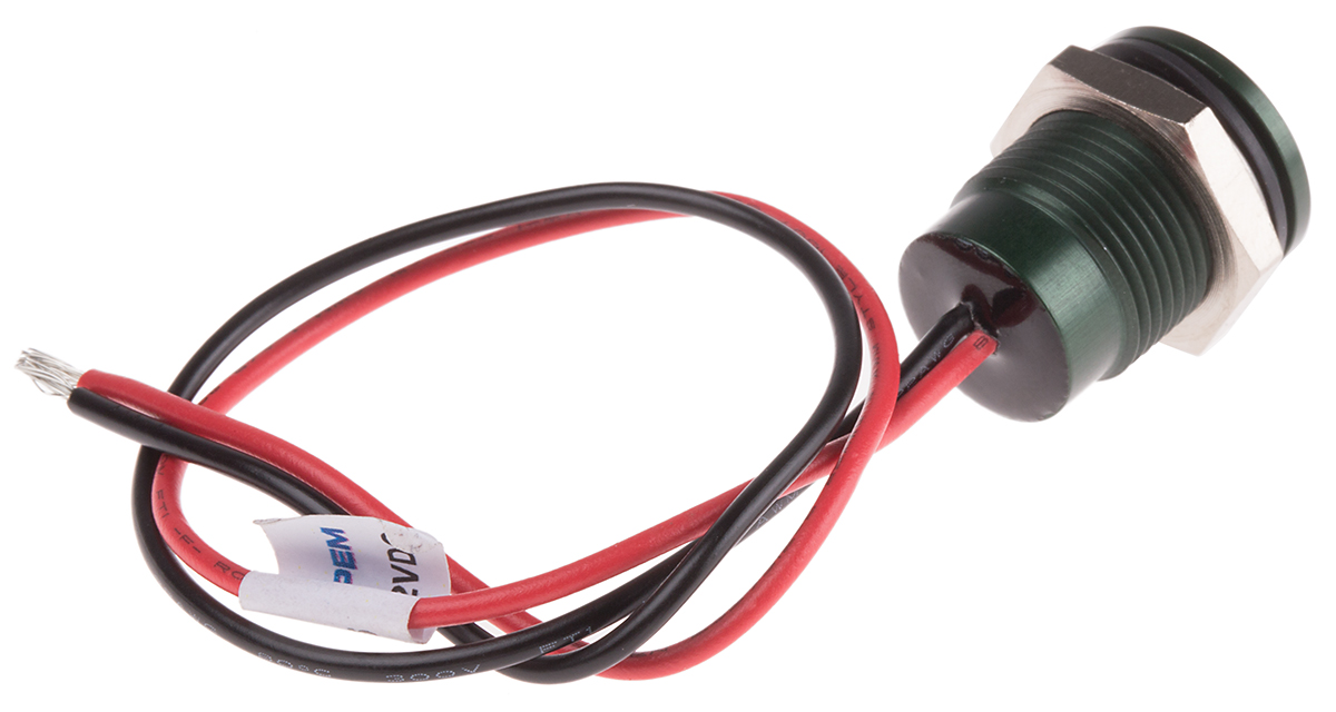 This is Green Indicator 12 V dc 14mm Mounting Hole Size Lead Wires Termination IP67 manufactured by RS Pro. The manufacturer part number is 111-6574. Regarding light output colour, it outputs green light colour. The product has a current rating of 20ma. In addition, It features 14mm of mounting hole size. It is IP rated with ip67. Furthermore, the bezel has a classic green colour. Moreover, the product has a nominal 12v dc voltage rating. The given intensity of the product is 250mcd. Its accurate length is 19.4mm. The bezel features a flush style. The product is designed with a lead wires termination. It is a type of led lamp.