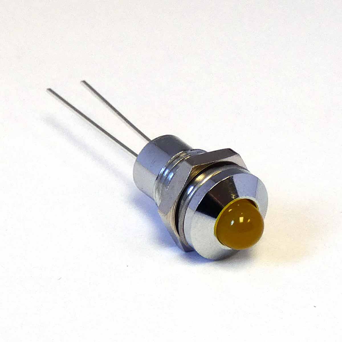 This is Panel Mount Indicator 8mm No resistor manufactured by CML Innovative Technologies. The manufacturer part number is 19040002. Regarding light output colour, it outputs yellow light colour. The product has a current rating of 10ma. In addition, It features 8mm of mounting hole size. Moreover, the product has a nominal 2.1v voltage rating. Furthermore, the bezel has a classic chrome colour. The product 1904x00x, is a highly preferred choice for users. The given intensity of the product is 20mcd. Its accurate length is 16.5mm. The bezel features a prominent style. It is a type of led lamp.