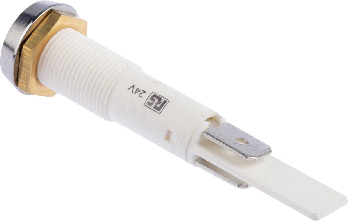 This is Orange Indicator 24V 10mm Mounting Hole Size manufactured by Arcolectric (Bulgin) Ltd. The manufacturer part number is C027500FAM. Regarding light output colour, it outputs orange light colour. The product has a current rating of 22ma. In addition, It features 10mm of mounting hole size. The product is available in panel mount configuration. It is IP rated with ip67. Furthermore, the bezel has a classic chrome colour. The product 0275, is a highly preferred choice for users. Moreover, the product has a nominal 24v voltage rating. Its accurate length is 57.7mm. It is a circular product with unique specifications. The bezel features a flush style. The product is designed with a solder tab termination. It is a type of filament lamp.
