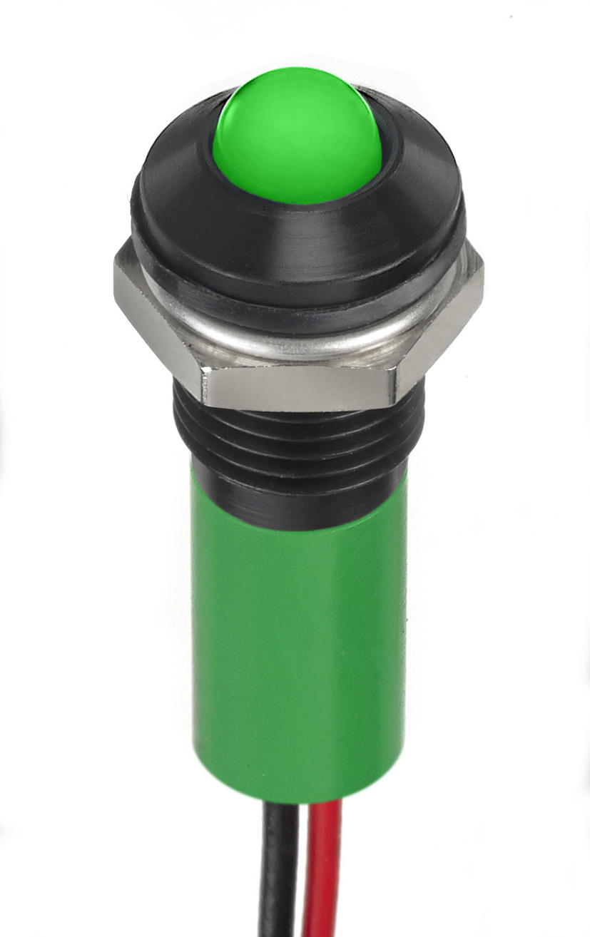 This is Green Panel Mount Indicator 12V dc 8mm Mounting Hole Size Lead Wires Termination IP67 manufactured by RS PRO. The manufacturer part number is 249-4329. Regarding light output colour, it outputs green light colour. Its lamp is 5 mm in size . In addition, It features 8mm of mounting hole size. Moreover, the product has a nominal 12v dc voltage rating. The product q8 series, is a highly preferred choice for users. It is IP rated with ip67. The product is designed with a lead wires termination. It is a type of led lamp.