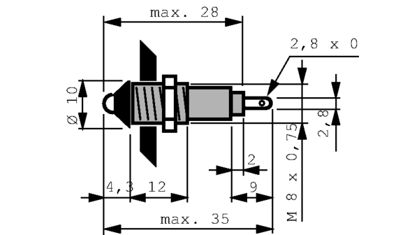 This is Red Panel Mount Indicator 2 → 3V 8.2mm Mounting Hole Size Faston Solder Lug Termination IP40 manufactured by Signal Construct. The manufacturer part number is SMQD0801. Regarding light output colour, it outputs red light colour. In addition, It features 8.2mm of mounting hole size. Moreover, the product has a nominal 2 → 3v voltage rating. It is IP rated with ip40. The product is designed with a faston, solder lug termination. It is a type of led lamp.