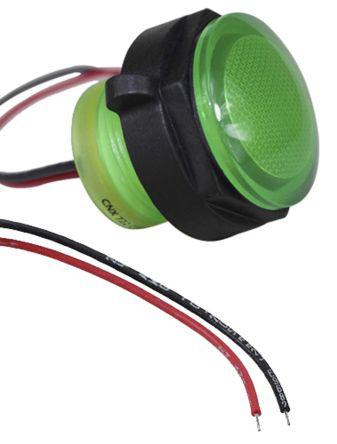 This is IP67 Panel Mount LED Indicator manufactured by VCC. The manufacturer part number is CNX722C500FVW. Regarding light output colour, it outputs green light colour. The product has a current rating of 20ma. In addition, It features 22mm of mounting hole size. It is IP rated with ip67. Furthermore, the bezel has a classic blue colour. The given intensity of the product is 700 → 1400mcd. Its accurate length is 21.1mm. The LED has a classic green colours. It is a type of led lamp. It comes in panel mount configuration.
