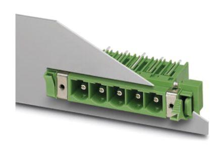 This is manufactured by Phoenix Contact. The manufacturer part number is 1702329. The product has a current rating of 76.0a. Moreover, the product has a nominal 1.0 kv voltage rating. The product dfk-pcv 6-16/ 9-gf-10.16, is a highly preferred choice for users. Moreover, the product is 10.16mm. It allows solder termination method. The product is made from sturdy silver materials. The panel has 2 piece, snap lock - front flange mount configurations. It is assigned with possible HTSUS value of 8536.69.4040. The product is rohs compliant. Furthermore, the product is 4.992" (126.80mm) wide. It has a panel thickness of 0.039 ~ 0.118" (1.0 ~ 3.0mm). The phoenix contact's product offers user-desired applications. The wire has connectivity at front panel as header, male pins. Its typical moisture sensitivity level is 1 (unlimited). While 600 v is the typical voltage of the product. The product carries 1 levels. The splendid features of the product include threaded mating lock, shield connection feedthrough. It has a classic green colour. The product combicon dfk-pcv, is a highly preferred choice for users. It has 9 positions each level. In addition, bulk is the available packaging type of the product. The typical current includes 5 a. Moreover, the product is 0.400" (10.16mm). While the wire connected to rear panel in pcb pins - straight configuration. The product is designated with the ear99 code number.