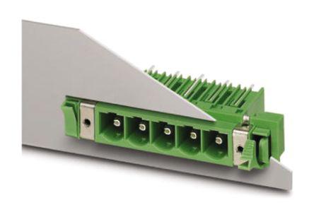 This is manufactured by Phoenix Contact. The manufacturer part number is 1702277. The product has a current rating of 76.0a. Moreover, the product has a nominal 1.0 kv voltage rating. The product dfk-pcv 6-16/ 4-gf-10.16, is a highly preferred choice for users. Moreover, the product is 10.16mm. It allows solder termination method. The product is made from sturdy silver materials. The panel has 2 piece, snap lock - front flange mount configurations. It is assigned with possible HTSUS value of 8536.69.4030. The product is rohs compliant. Furthermore, the product is 2.992" (76.00mm) wide. It has a panel thickness of 0.039 ~ 0.118" (1.0 ~ 3.0mm). The phoenix contact's product offers user-desired applications. The wire has connectivity at front panel as header, male pins. Its typical moisture sensitivity level is 1 (unlimited). While 300 v is the typical voltage of the product. The product carries 1 levels. The splendid features of the product include threaded mating lock, shield connection front side. It has a classic green colour. The product combicon dfk-pcv, is a highly preferred choice for users. It has 4 positions each level. In addition, bulk is the available packaging type of the product. The typical current includes 66 a. Moreover, the product is 0.400" (10.16mm). While the wire connected to rear panel in pcb pins - straight configuration. The product is designated with the ear99 code number.