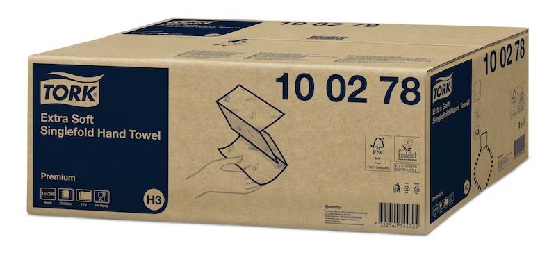 This is Extra Soft Singlefold Hand Towel Premium Folded White Paper Towel 115 x 226 (Folded) mm 230 x 226 (Unfolded) mm manufactured by Tork. The manufacturer part number is 100278. Better World Verification Options - eu ecolabel, fsc certified. It is assigned with a trade name of quickdry™ extra soft premium. It has about 115 x 226mm size sheet . Is it a better world product? yes. It has a decent white colour. It has 2 ply . It includes 200 sheets . The product is provided with 115mm length. It has a form factor of folded. In addition, 226mm is the Sheet Width of the product.
