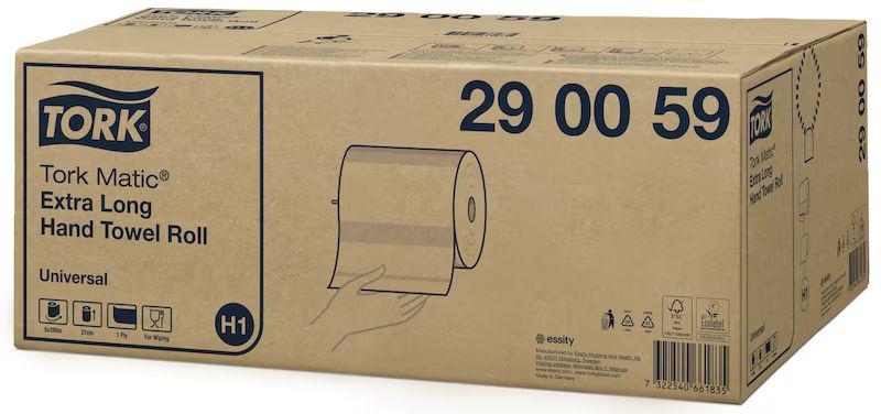 This is Matic Extra Long Hand Towel White manufactured by Tork. The manufacturer part number is 290059. Better World Verification Options - eu ecolabel, fsc certified. It is assigned with a trade name of tork matic® universal hand towels. It has about 280 m x 210 mm size sheet . Is it a better world product? yes. In addition, 210mm is the Sheet Width of the product. It has 1 ply . It features tork matric range. The product is provided with 280000mm length. It has a form factor of roll. It has a decent white colour.