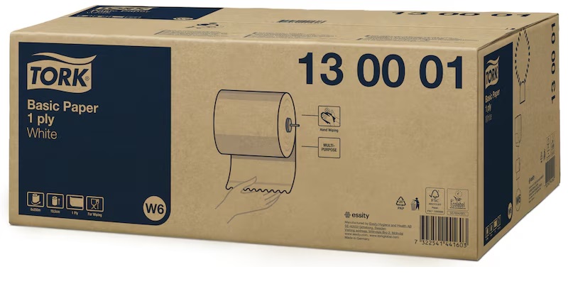 This is Rolled Wipes manufactured by Tork. The manufacturer part number is 130001. Better World Verification Options - eu ecolabel, fsc certified. It has about 250000 x 195mm size sheet . Is it a better world product? yes. It has a decent white colour. It has 1 ply . The product is provided with 250000mm length. It has a form factor of roll. In addition, 195mm is the Sheet Width of the product.