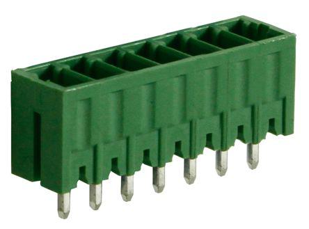 This is 3.5mm Pitch Vertical PCB Terminal Block PCB Header PCB Mount 7 Way manufactured by RS Pro. The manufacturer part number is 897-1045. The product has a current rating of 10a. The product is available in through hole configuration. It has vertical body orientation. It allows screw termination method. It comes in 1 of rows. Moreover, the product is 3.5mm. The product contains 7 contacts.