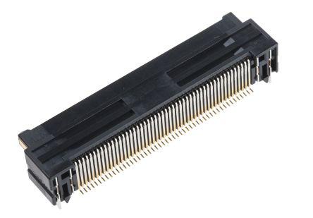 This is FunctionMAX FX18 0.8mm Pitch 100 Way 2 Row Right Angle PCB Header Surface Mount manufactured by Hirose. The manufacturer part number is FX18-100P-0.8SH. The product has a current rating of 3ma. The product is available in surface mount configuration. Moreover, the product has a nominal 100 v ac voltage rating. The product functionmax fx18, is a highly preferred choice for users. It has right angle body orientation. It allows solder termination method. It allows board to board connector system. It comes in 2 of rows. The high-quality gold is used as contact plating material. Moreover, the product is 0.8mm. The product contains 100 contacts. It comes in board to board configuration. The product is made from sturdy phosphor bronze materials.
