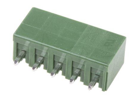 This is 3.81mm Pitch Straight PCB Terminal Strip PCB Header Through Hole 5 Way manufactured by RS Pro. The manufacturer part number is 790-0887. The product has a current rating of 10a. The product is available in through hole configuration. It has straight body orientation. It allows screw termination method. It comes in 1 of rows. Moreover, the product is 3.81mm. The product contains 5 contacts.