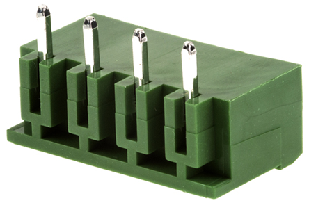 This is 5.08mm Pitch Straight PCB Terminal Strip PCB Header Through Hole 4 Way manufactured by RS Pro. The manufacturer part number is 790-1001. The product has a current rating of 16.0a. The product is available in through hole configuration. Moreover, the product has a nominal 300.0 v voltage rating. It has right angled body orientation. It allows solder termination method. It comes in 1 of rows. Moreover, the product is 5.08mm. The product contains 4 contacts.