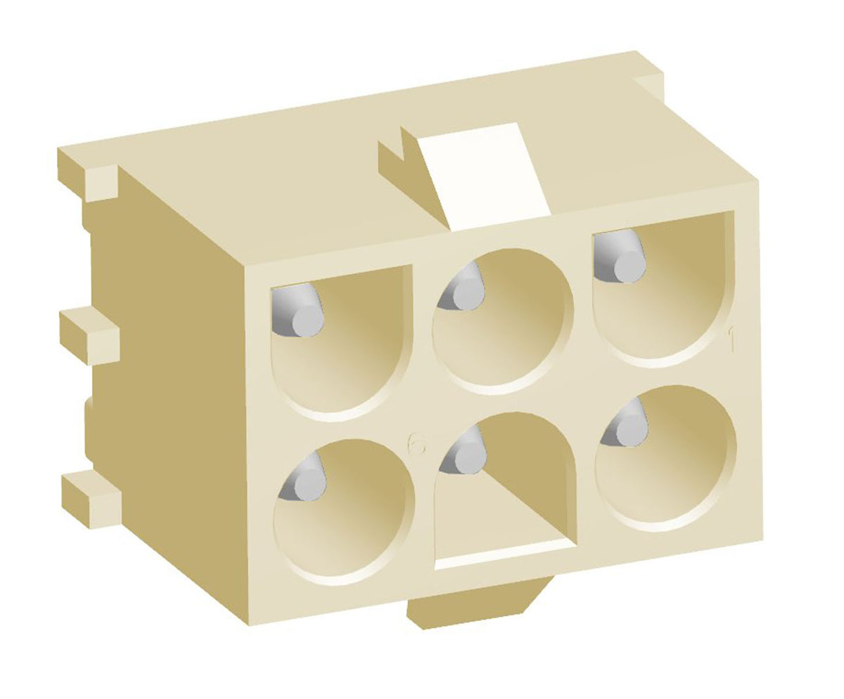 This is Universal MATE-N-LOK 6.35mm Pitch 6 Way 2 Row Vertical PCB Header Through Hole manufactured by TE Connectivity. The manufacturer part number is 1969814-1. It is supplied as shrouded. The product has a current rating of 19.0a. The product is available in through hole configuration. Moreover, the product has a nominal 600.0 v voltage rating. The product universal mate-n-lok, is a highly preferred choice for users. It has straight body orientation. It allows solder termination method. It allows wire to board connector system. It comes in 2 of rows. The high-quality tin is used as contact plating material. Moreover, the product is 6.35mm. The product contains 6 contacts. The product is made from sturdy phosphor bronze materials.