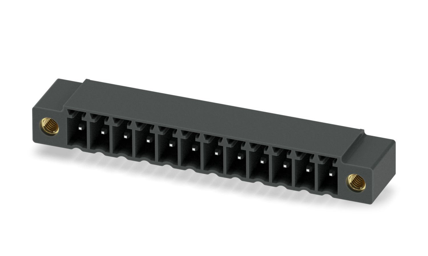 This is COMBICON MC 3.5mm Pitch 12 Way PCB Terminal Block Header manufactured by Phoenix Contact. The manufacturer part number is 1789588. The product has a current rating of 8.0a. The product is available in through hole configuration. Moreover, the product has a nominal 250.0 v voltage rating. The product mc 1.5/12-gf-3.5 p20 thr, is a highly preferred choice for users. It has right angle body orientation. It allows solder termination method. It comes in 1 of rows. Moreover, the product is 3.5mm. The product contains 12 contacts. The product is made from sturdy tin materials. It is assigned with possible HTSUS value of 8536.69.4040. Moreover, it has solder terminal style. The product also features robust liquid crystal polymer (lcp) housing material. The product has -40°c ~ 100°c operating temperature range. It comes in header, male pins, shrouded (4 side) configuration. The product carries possible position value of 12. The typical tail length of the product is [Contact Tail Lenght]. 0.272" (6.91mm) of insulation height. It carries ul94 v-0 of material flammability rating. It is shipped in bulk package . An IEC current of 8a. While 300 v is the typical voltage of the product. It has a long 8 weeks standard lead time. The mating finish of the contact is tin. The nominal voltage of the product is 160 v. The splendid features of the product include flange. It has a classic black colour. The product combicon mc, is a highly preferred choice for users. It has 12 positions each level. The product has a 90°, right angle of a header orientation. The typical current includes 8 a. Moreover, the product is 0.138" (3.50mm). The product carries 1 levels. The product is designated with the ear99 code number. The product is made from sturdy copper alloy materials.