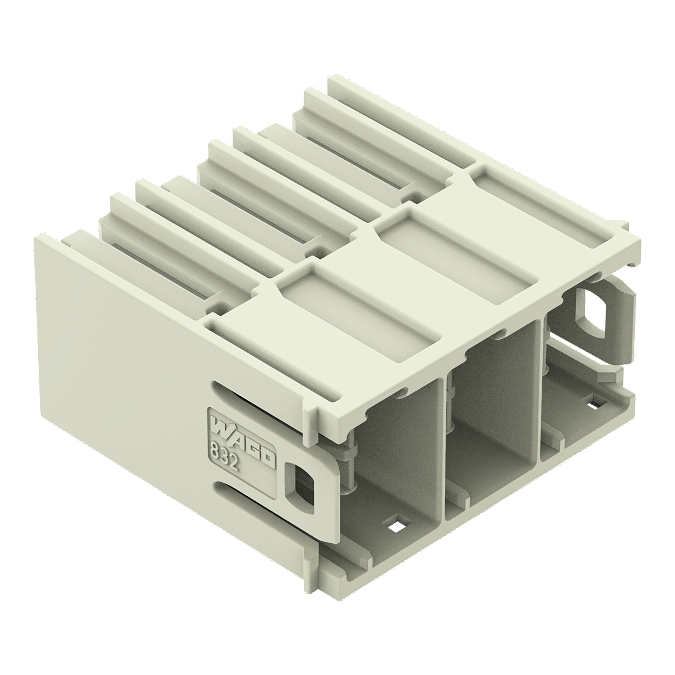 This is 832 Series Angled PCB Mount PCB Header 3 Contact(s) 10.16mm Pitch 1 Row(s) Shrouded manufactured by WAGO. The manufacturer part number is 832-3623. The product is made from sturdy electrolytic copper materials. The product contains 3 contacts. The product has a angled orientation. The product also features robust polybutylene terephthalate housing material. It is supplied as shrouded. The product 832, is a highly preferred choice for users. This male contact is widely suited for specific applications. Features a 76a current in A. It comes in 1 of rows. It carries a 1000 v of voltage. The high-quality silver is used as contact plating material. Moreover, the product is 10.16mm. It has about 4mm mating pin in length . pcb header is a versatile product designed to provide user-defined applications. It has a maximum operating temperature of 120°c. Whereas, the minimum operating temperature of the product is -60°c. It has a pcb type mount .