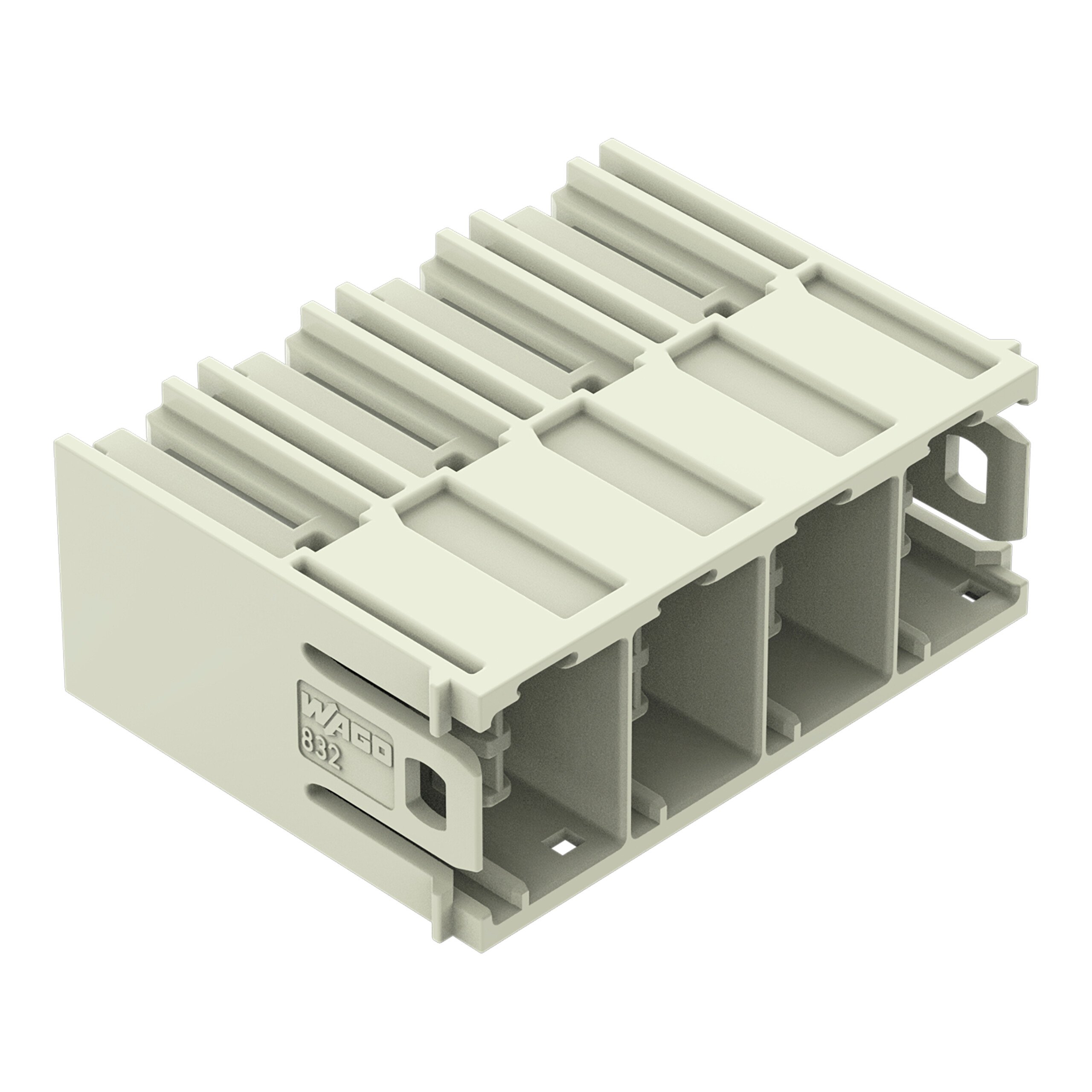 This is 832 Series Angled PCB Mount PCB Header 4 Contact(s) 10.16mm Pitch 1 Row(s) Shrouded manufactured by WAGO. The manufacturer part number is 832-3624. The product is made from sturdy electrolytic copper materials. The product contains 4 contacts. The product has a angled orientation. The product also features robust polybutylene terephthalate housing material. It is supplied as shrouded. The product 832, is a highly preferred choice for users. This male contact is widely suited for specific applications. Features a 76a current in A. It comes in 1 of rows. It carries a 1000 v of voltage. The high-quality silver is used as contact plating material. Moreover, the product is 10.16mm. It has about 4mm mating pin in length . pcb header is a versatile product designed to provide user-defined applications. It has a maximum operating temperature of 120°c. Whereas, the minimum operating temperature of the product is -60°c. It has a pcb type mount .