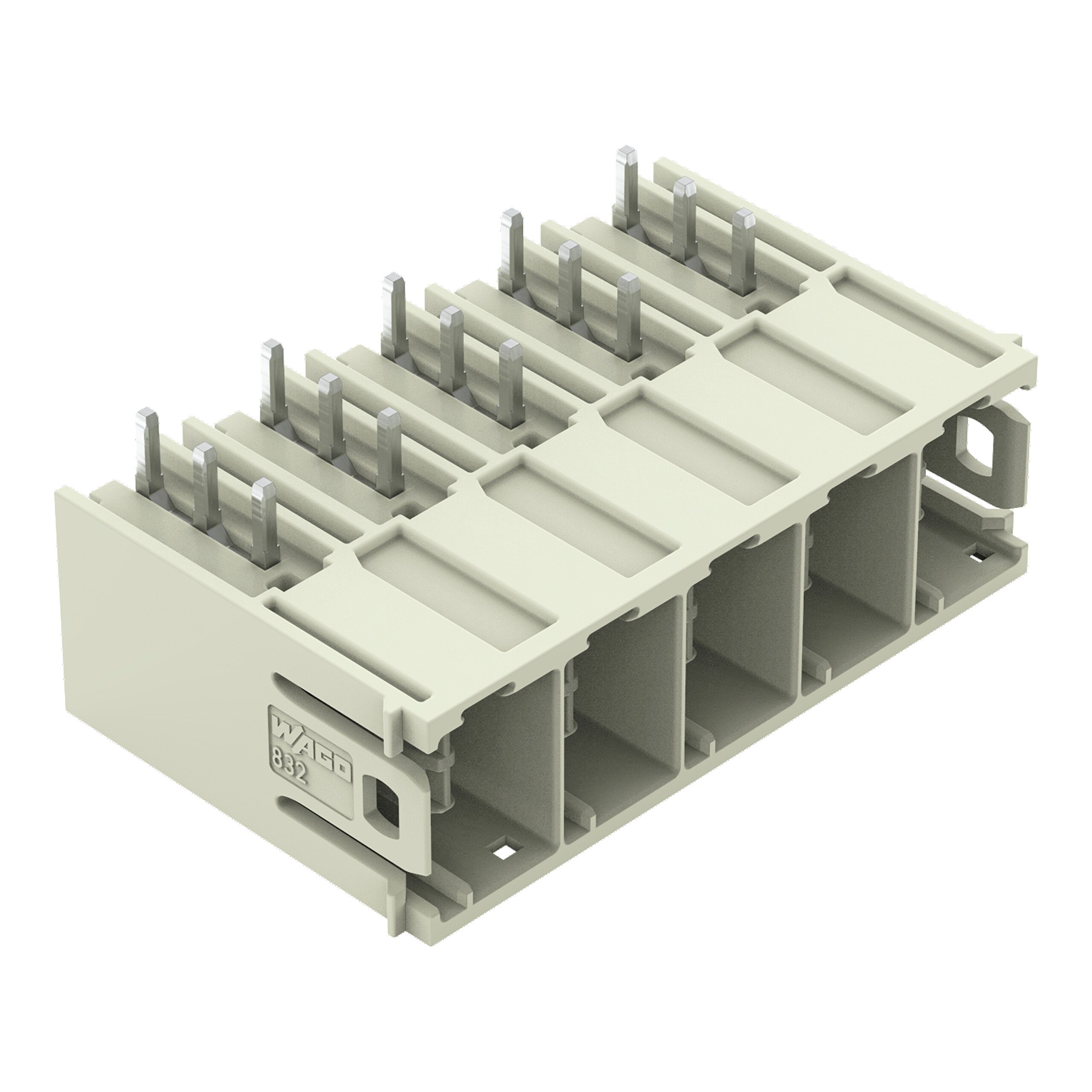 This is 832 Series Angled PCB Mount PCB Header 5 Contact(s) 10.16mm Pitch 1 Row(s) Shrouded manufactured by WAGO. The manufacturer part number is 832-3645. The product is made from sturdy electrolytic copper materials. The product contains 5 contacts. The product has a angled orientation. The product also features robust polybutylene terephthalate housing material. It is supplied as shrouded. The product 832, is a highly preferred choice for users. This male contact is widely suited for specific applications. Features a 76a current in A. It comes in 1 of rows. It carries a 1000 v of voltage. The high-quality silver is used as contact plating material. Moreover, the product is 10.16mm. It has about 4mm mating pin in length . pcb header is a versatile product designed to provide user-defined applications. It has a maximum operating temperature of 120°c. Whereas, the minimum operating temperature of the product is -60°c. It has a pcb type mount .