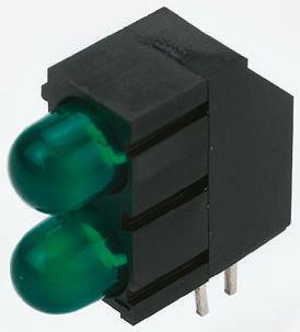This is Green Right Angle PCB LED Indicator 2 LEDs Through Hole 2.5 V manufactured by Kingbright. The manufacturer part number is L-1503EB/2GD. It has a right angle LED orientation . The given dimensions of the product include 15.5 x 6.1 x 12.6mm. The product is available in through hole configuration. It has a dominant wavelength of 568 nm. The given intensity of the product is 20mcd. In addition, the height is 12.6mm. Furthermore, the product is 6.1mm wide. Its accurate length is 15.5mm. It is comprised of 4 pins. Additionally, it has a/an gap LED material . It consists of 2 LEDs. The LED has a classic green colours. Furthermore, 60 ° is the viewing angle of the product. Features 2.5 v supply voltage.