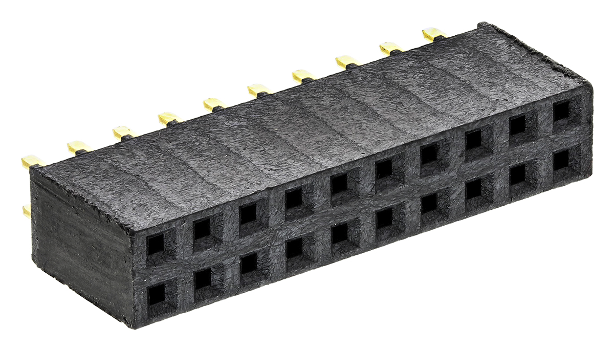 This is SSW Series 2.54mm Pitch 20 Way 2 Row Straight PCB Socket Through Hole Solder Termination manufactured by Samtec. The manufacturer part number is SSW-110-01-G-D. The product has a current rating of 6.9a. The high-quality au/sn over ni is used as contact plating material. The product is available in through hole configuration. Moreover, the product has a nominal 550 v voltage rating. The product ssw, is a highly preferred choice for users. It has straight body orientation. It allows solder termination method. It allows board to board connector system. It comes in 2 of rows. Moreover, the product is 2.54mm. The product contains 20 contacts. It comes in board to board configuration. The product is made from sturdy bronze materials.