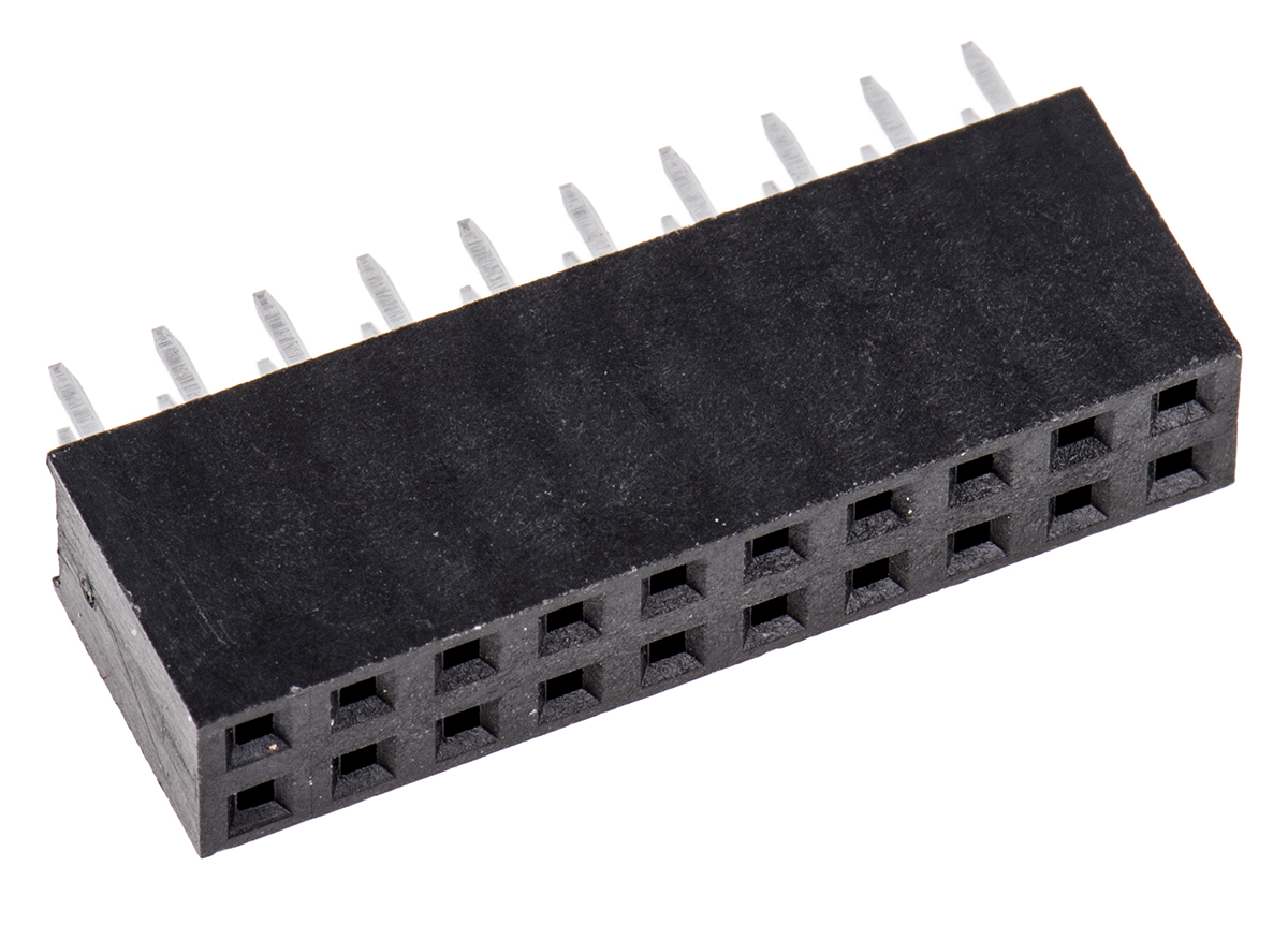 This is 2.54mm Pitch 20 Way 2 Row Straight PCB Socket Through Hole Solder Termination manufactured by HARWIN. The manufacturer part number is M20-7831046. The product has a current rating of 12a. The product is available in through hole configuration. It has straight body orientation. It allows solder termination method. It comes in 2 of rows. Moreover, the product is 2.54mm. The product contains 20 contacts. It comes in socket strip configuration. The product is made from sturdy bronze materials.