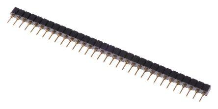 This is AW 127 Series 2.54mm Pitch 32 Way 1 Row Straight PCB Socket Through Hole Solder Termination manufactured by ASSMANN WSW. The manufacturer part number is AW 127-32/G-T. The product has a current rating of 3a. The product is available in through hole configuration. Moreover, the product has a nominal 100 v ac voltage rating. The product aw 127, is a highly preferred choice for users. It has straight body orientation. It allows solder termination method. It comes in 1 of rows. Moreover, the product is 2.54mm. The product contains 32 contacts. It comes in board to board configuration. The product is made from sturdy phosphor bronze materials.